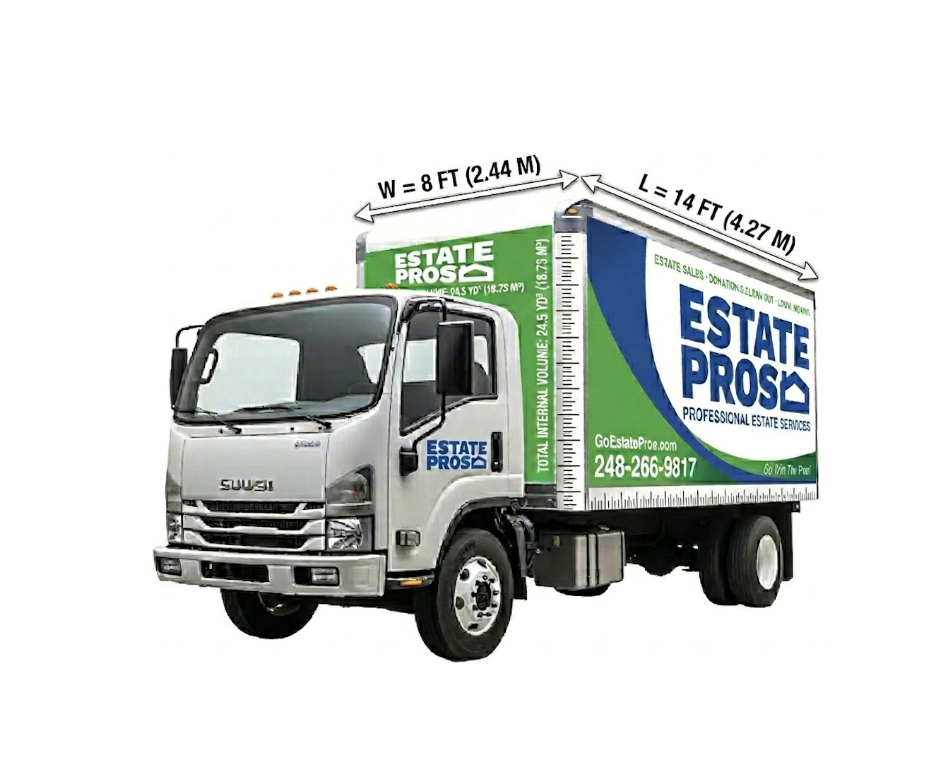 Our box trucks hold up to 675 cubic feet (25 cubic yards) of material.