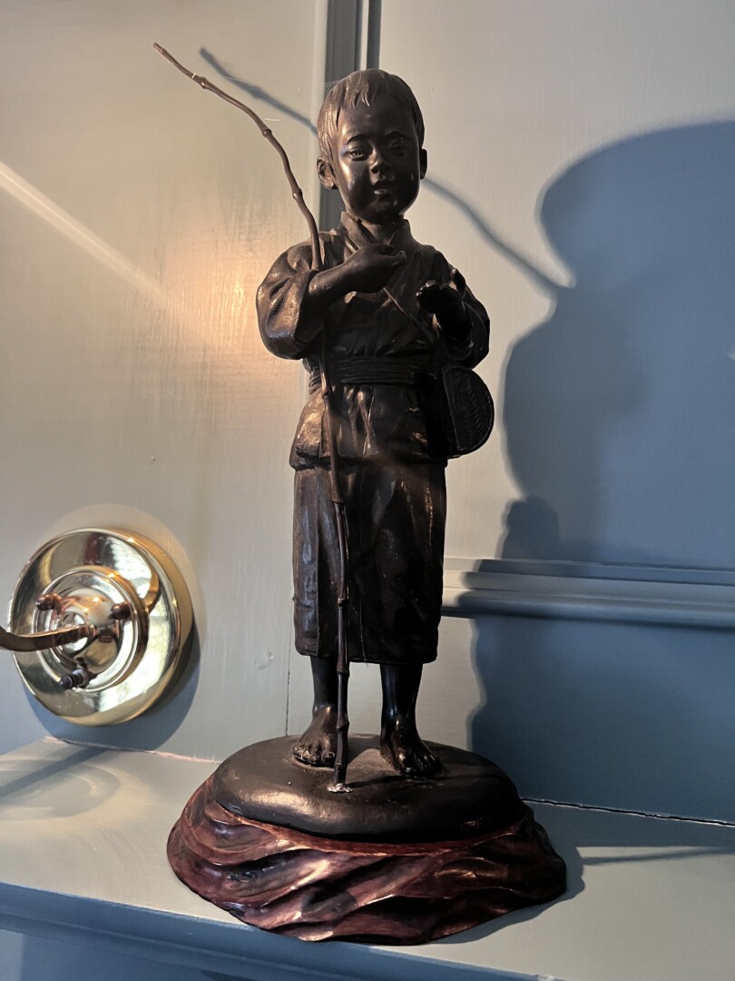 FIRST FLOOR: Steiff bears, St John (suits, pants, tops), Steuben & Baccarat crystal figurines, Bing Grondahl figurines, Royal Copenhagen figurines & plates, Chelsea ships bell clock, antique copper pots & tea kettles, antique crocs, vintage audio (onkyo ta-630d, nikko nr-615, philips automatic 406, panasonic VHS), Kittinger furniture (colonial sofas, wingback chairs, drop leaf table, desk, buffet chest, etc). Eldred Wheeler hanging cupboard, Hancock & Moore leather desk chair, folk art, fine china ( Lenox, wedgewood, etc), antique Japanese bronze statues, pewter decor, kitchenware, decor, accessories & more!