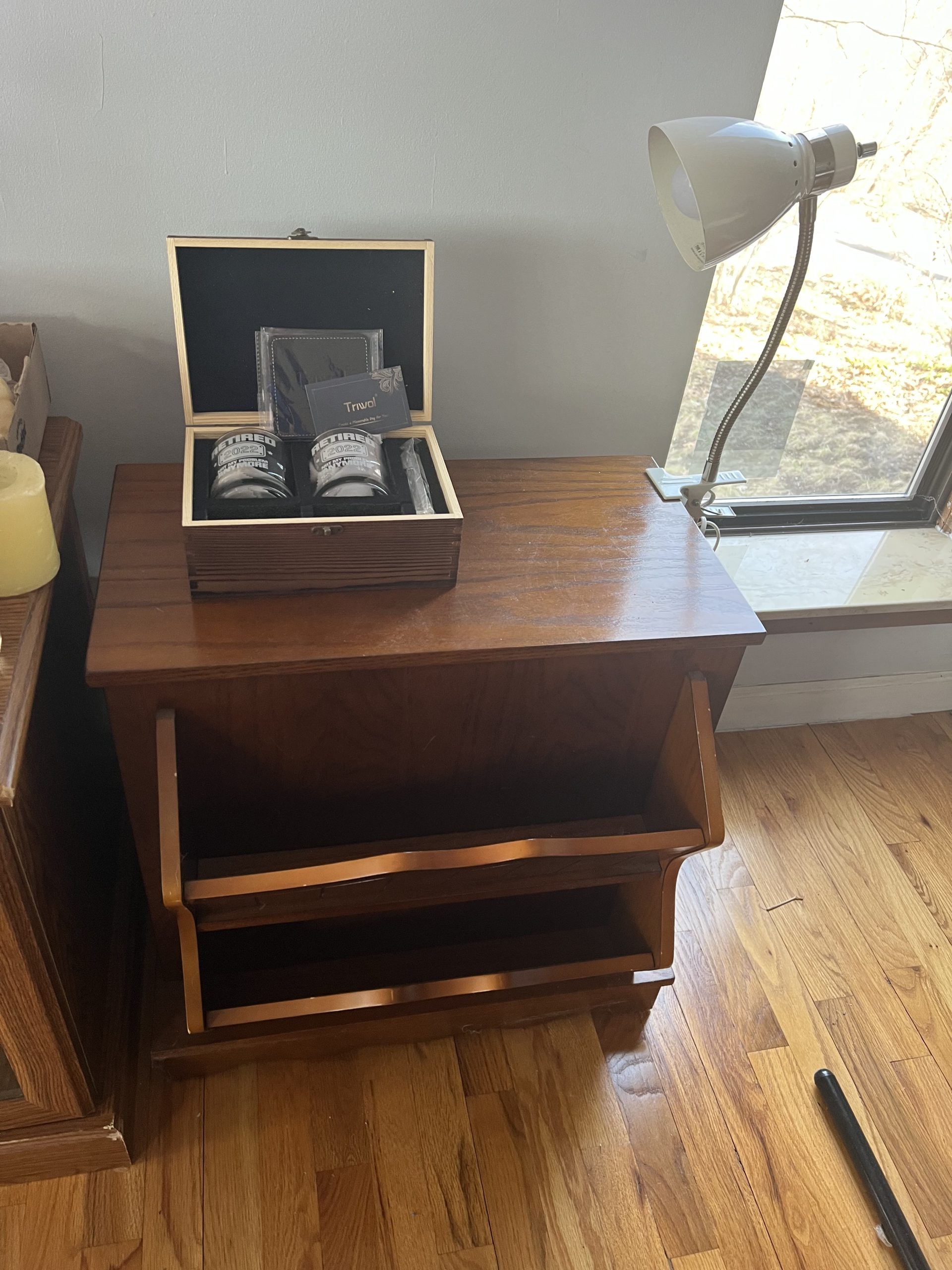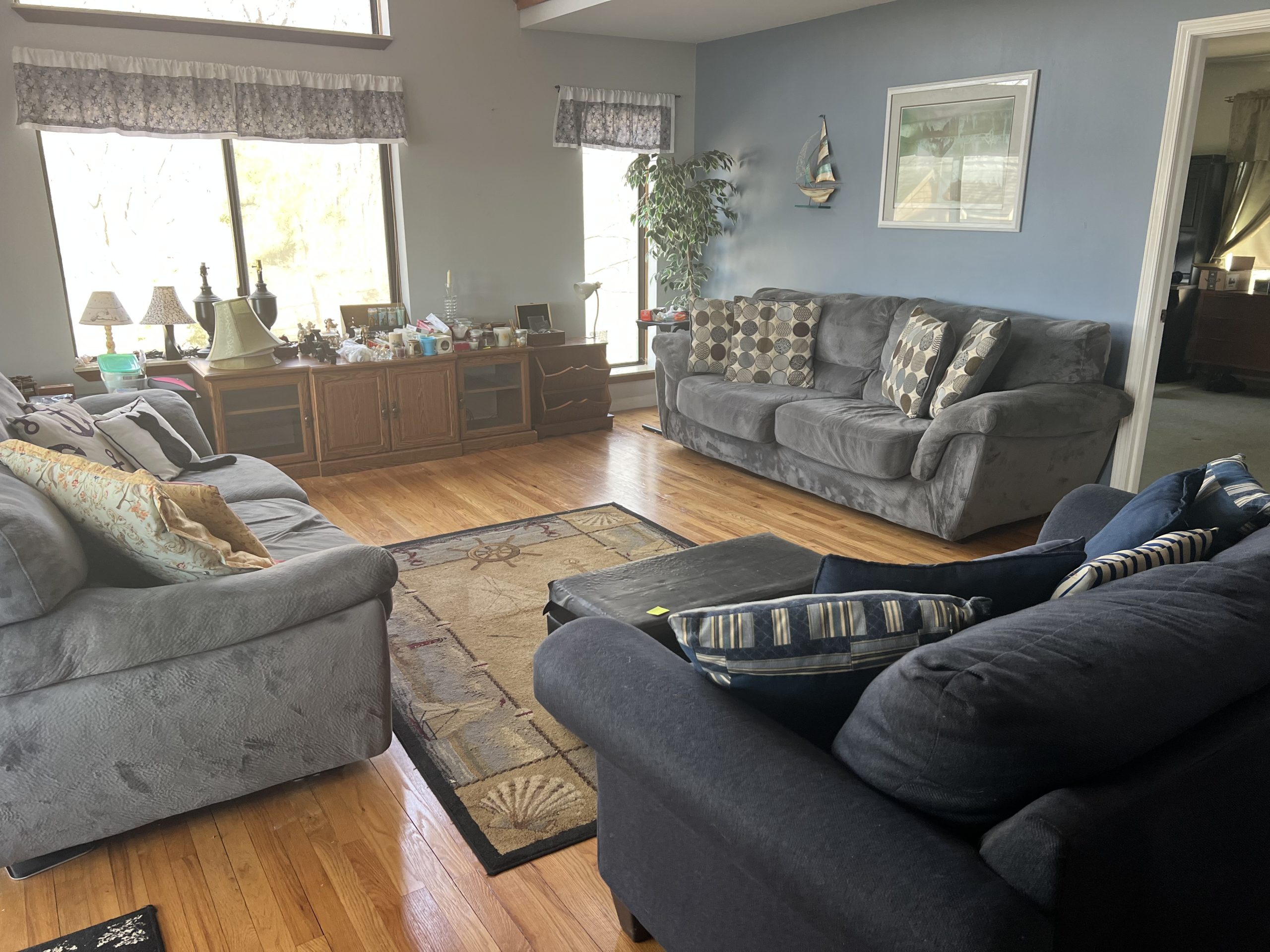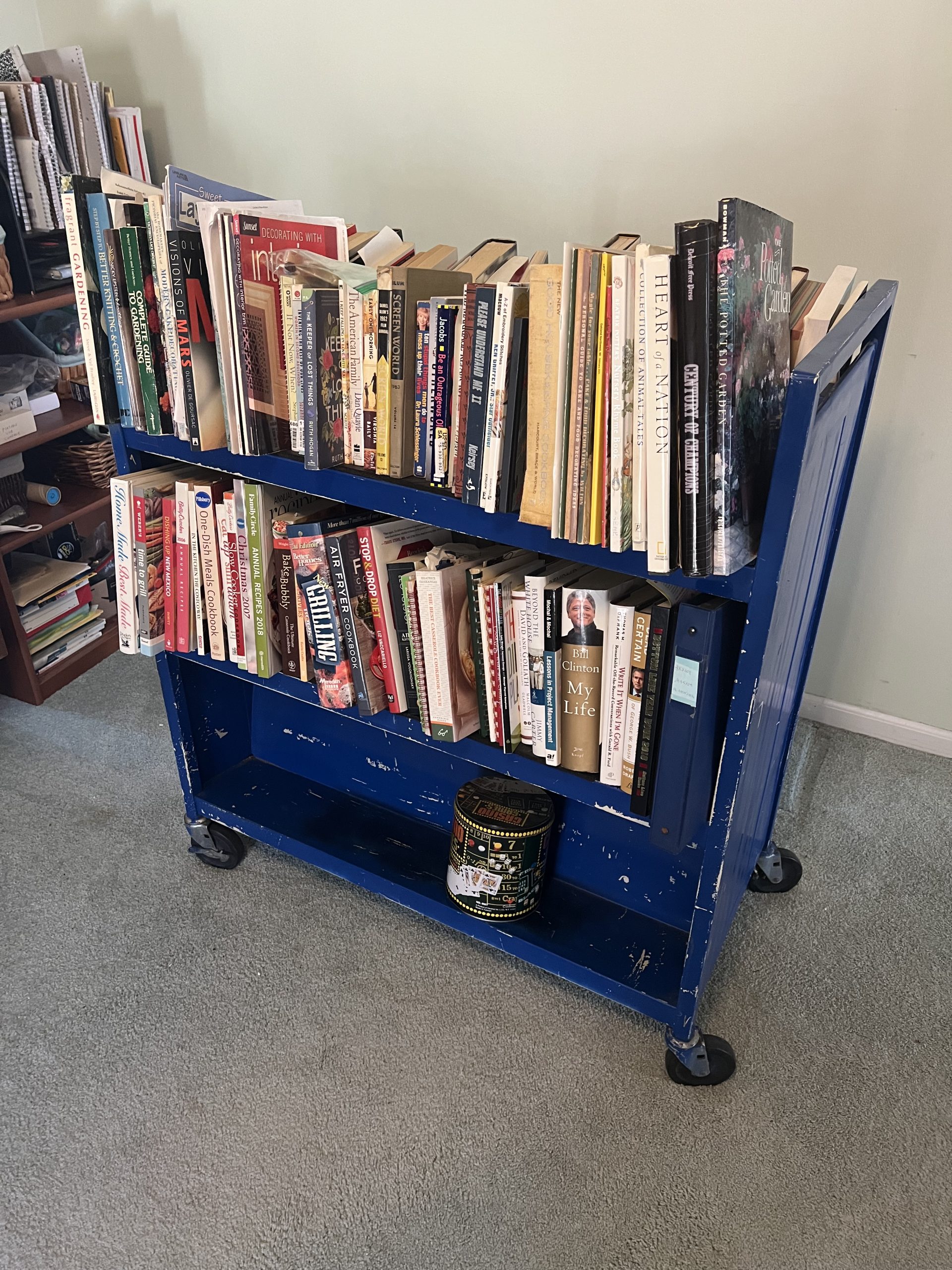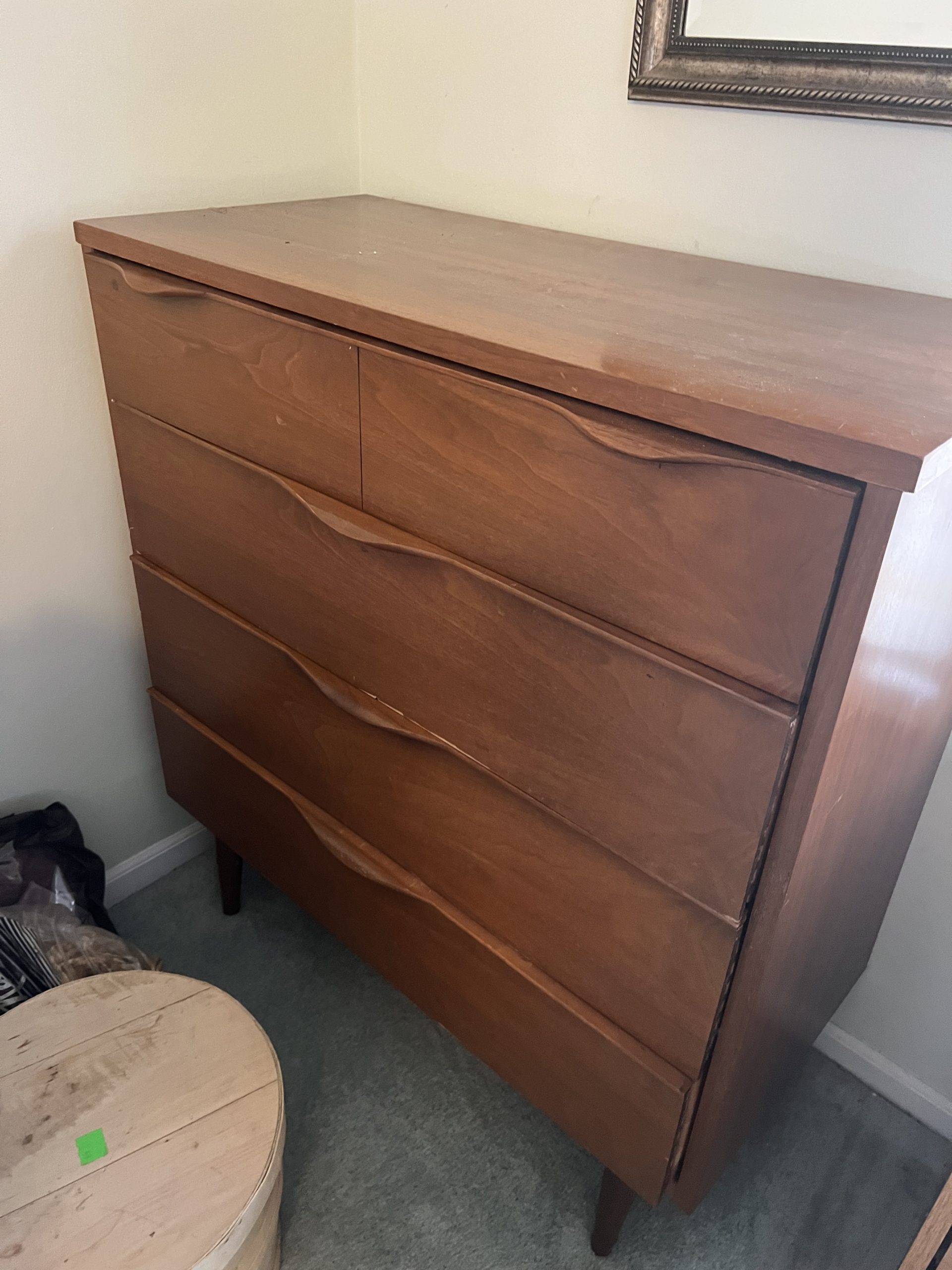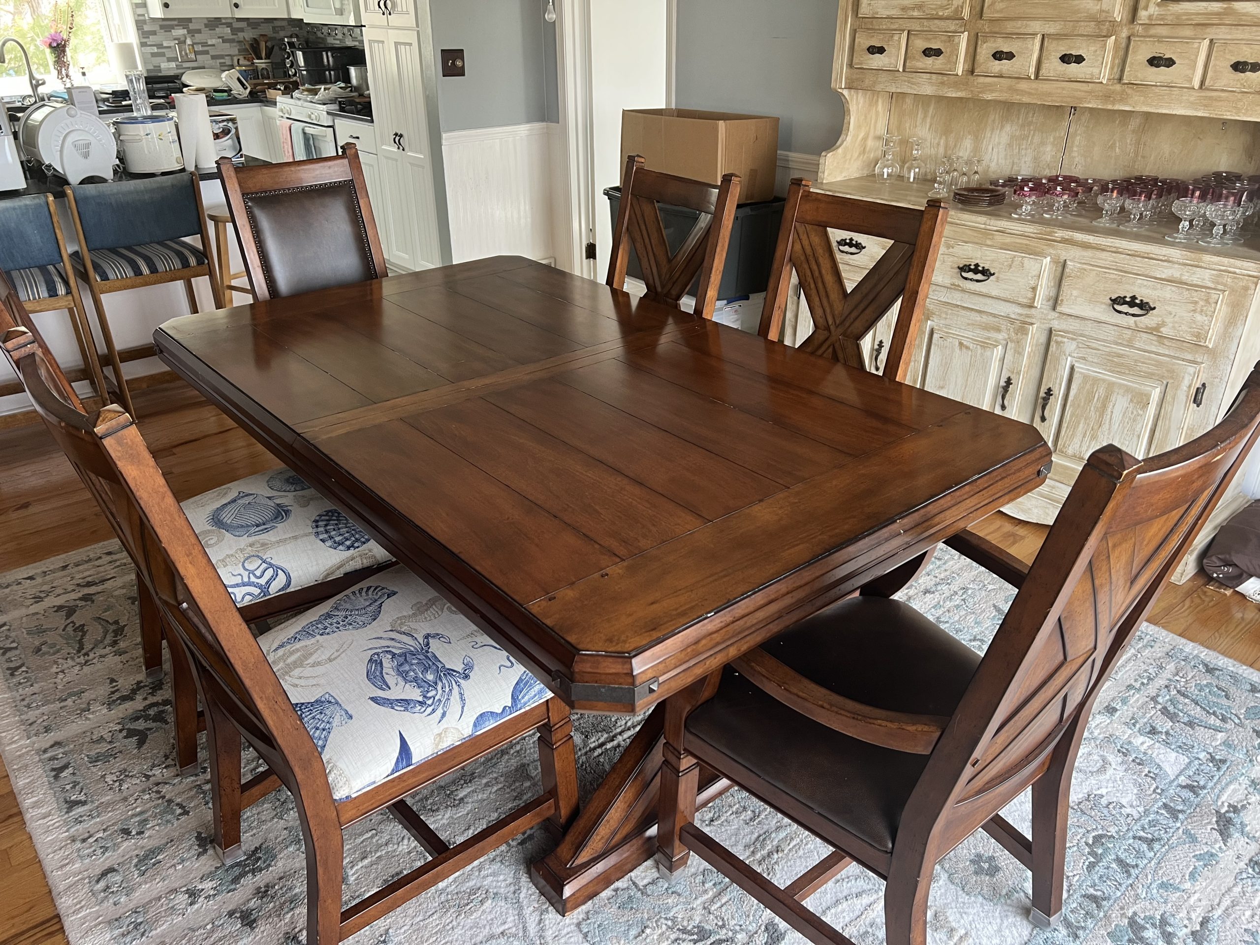 Upholstered sofas, office furniture, vintage men’s t-shirts/clothing, ladies clothing/shoes, Harmony House mid century dressers, nautical decor, Gorman’s Furniture dining room set, French cottage shabby chic china cabinet, Norman Rockwell collectible train set, luggage, fine china, kitchenware, housewares, decor, costume jewelry, TV stand, vintage library cart, books, candles, bar stools, cat stand & more!