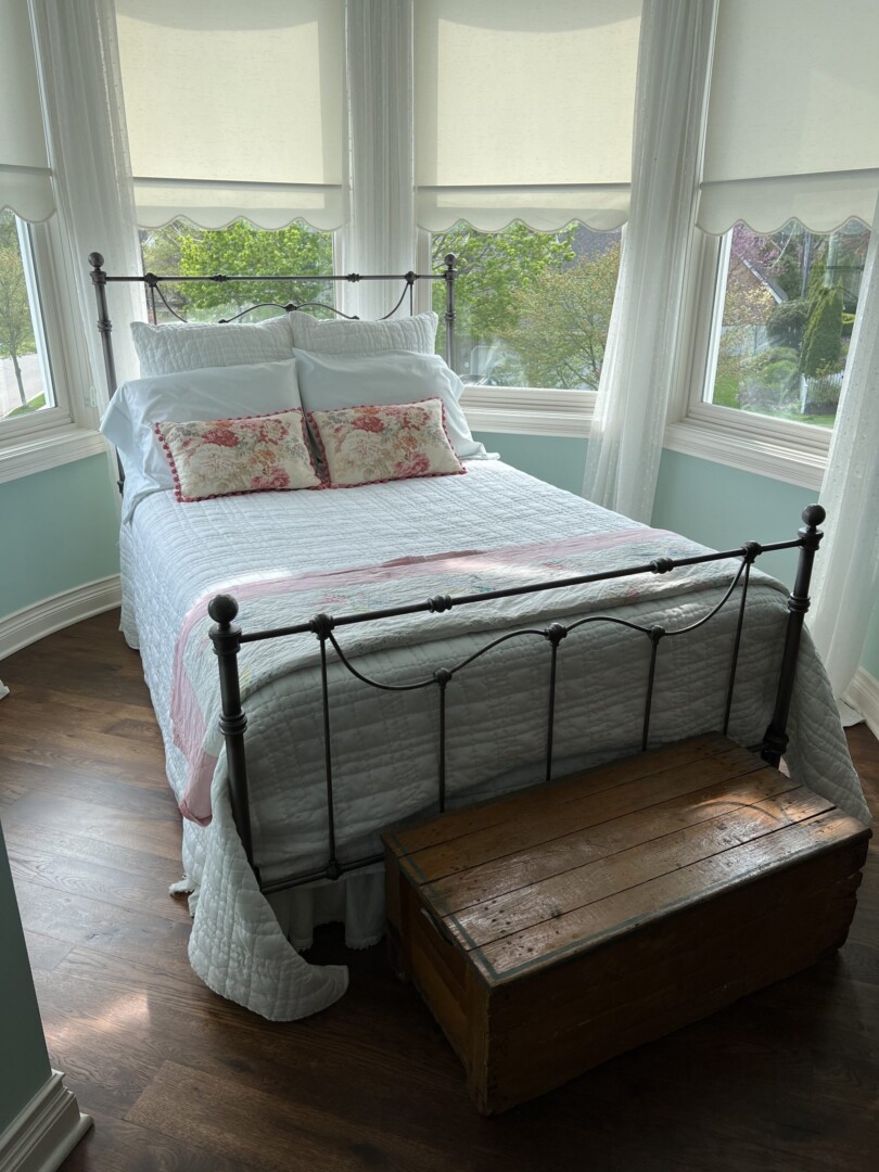 SECOND FLOOR: Tempur-pedic adjustable king mattress set, Lee upholstered chaise lounge, Gormans custom upholstered armchair, vintage wrought iron double bed, vintage bedroom furniture, vintage painted side tables, antique dry sink, antique and vintage quilts, calico corners custom upholstered bench, antique mirrors, Bob Timberlake armoire, antique cedar chest, industrial rolling cart, custom bedding, fine decor and accessories, antique sideboard, vintage dressing mirror and more!